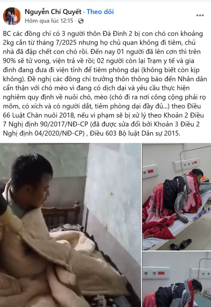 Vụ việc được dư luận quan tâm nhất lúc này,3 người thôn Đá Đinh 2 bị con chó con khoảng 2kg cắn từ tháng 7/2025 nhưng họ chủ quan không đi tiêm,bây giờ pha’t dại bệnh viện trả về