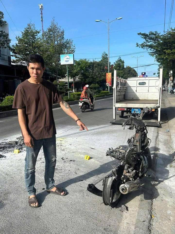 Khánh Hòa: Bị CSGT dừng xe kiểm tra vì chạy xe chở bạn gái không đội mũ bảo hiểm, thanh niên chống đối và đốt luôn xe.
