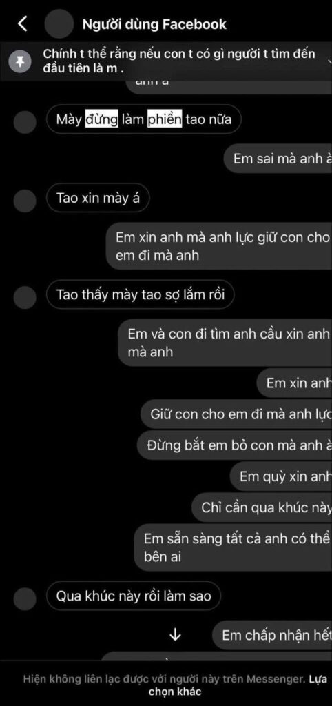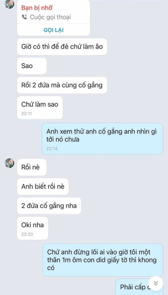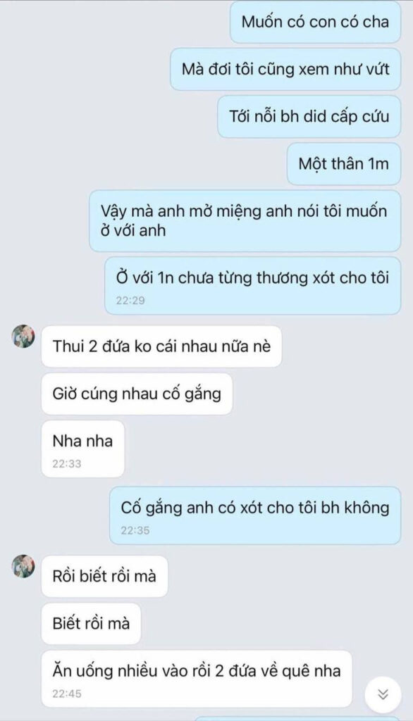 Đến nay là 4 tháng mang thai, em bé yếu, mẹ cũng gầy tọp đi mà chị C phải đi xuống Thanh Hóa, về Hà Tĩnh, lên Hà Nội mấy lần, một thân một mình chỉ mong thằng đó giữ đúng lời hứa: Không cưới nhưng vẫn sẽ sắp xếp tất cả mọi thứ rồi lo cho con tới khi khoẻ mạnh. Hiện tại anh Lực đã trốn về quê, chặn liên lạc, xóa facebook, hẹn hò vô tư như chưa có chuyện gì xảy ra, Còn hai mẹ con khó khăn ôm ấp nhau chẳng biết phải làm sao…